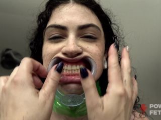 Milf Brittany’s guest at the power fetish table is gothic sexual kinky princess Lydia Black. Dressed in neon green and black latex lesbian sensual fetish play with pissing and mouth guards