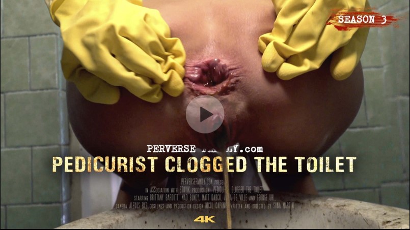 When Susan got off her beloved husband Charlie she pissed in the basin, sat on the kitchen chair, and lift her dirty feet up in the air for a pedicurist. Black hair busty woman dressed in white started her work on Susan's feet when she had an urgent need to use a perverted house toilet, but the real massacre had just begun because she clogged it and everything from the toilet started to come up.