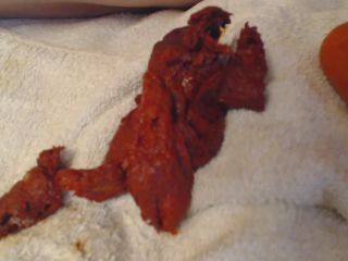 Red Poo play after watermelon
